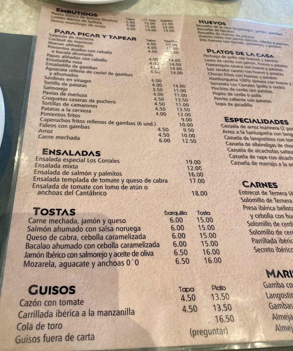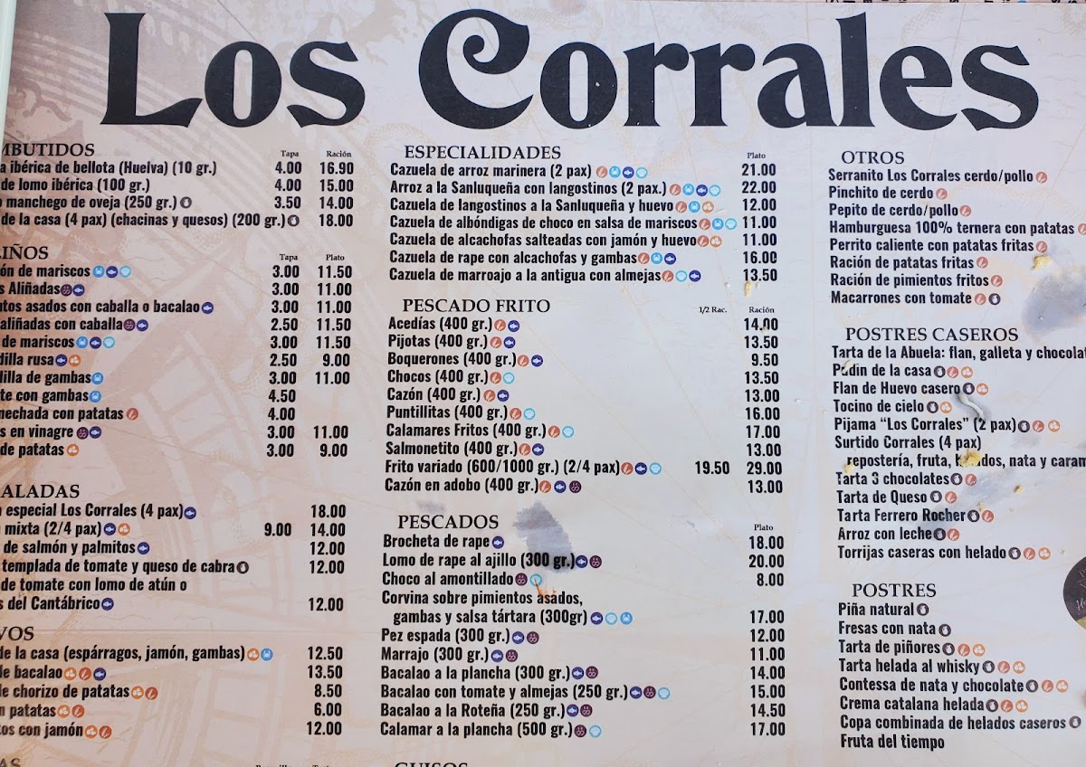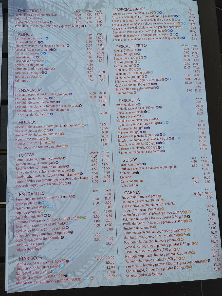 Welcome to Restaurante Los Corrales, a culinary gem nestled in the heart of Sanlucar de Barrameda, Cádiz. This charming establishment entices diners with its vibrant menu showcasing authentic Spanish cuisine. Highlights include the crowd-favorite Salpicon de mariscos and Calamar a la plancha, both praised for their freshness and robust flavors. Guests rave about the attentive service, although bear in mind that responsiveness can vary during busy hours. The restaurant's inviting decor and family-friendly atmosphere make it ideal for gatherings, ensuring that everyone enjoys a delightful dining experience. While there have been occasional oversights with orders, the quality of the food consistently impresses, leaving diners eager for their next visit. Perfect for seafood lovers and fans of homemade dishes alike, Restaurante Los Corrales promises a taste of Spain that lingers long after the last bite.
